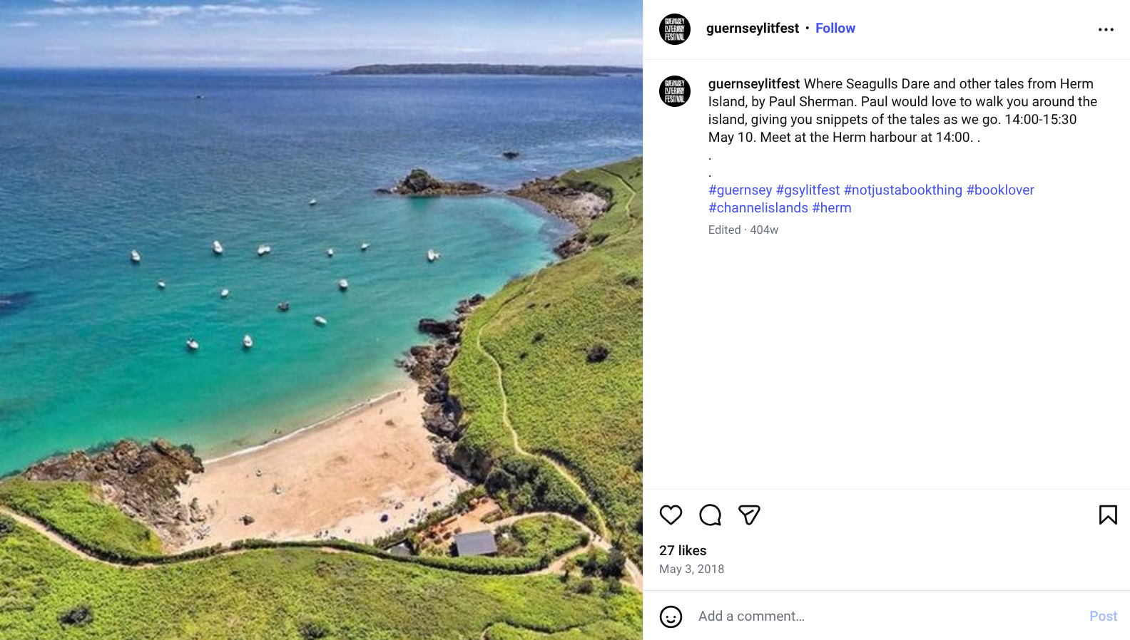 Scheduling social content and live reporting to promote Guernsey Lit Fest’s Speakers, children’s literacy, and community workshops programme. Speakers cover everything from the environment to food and politics.