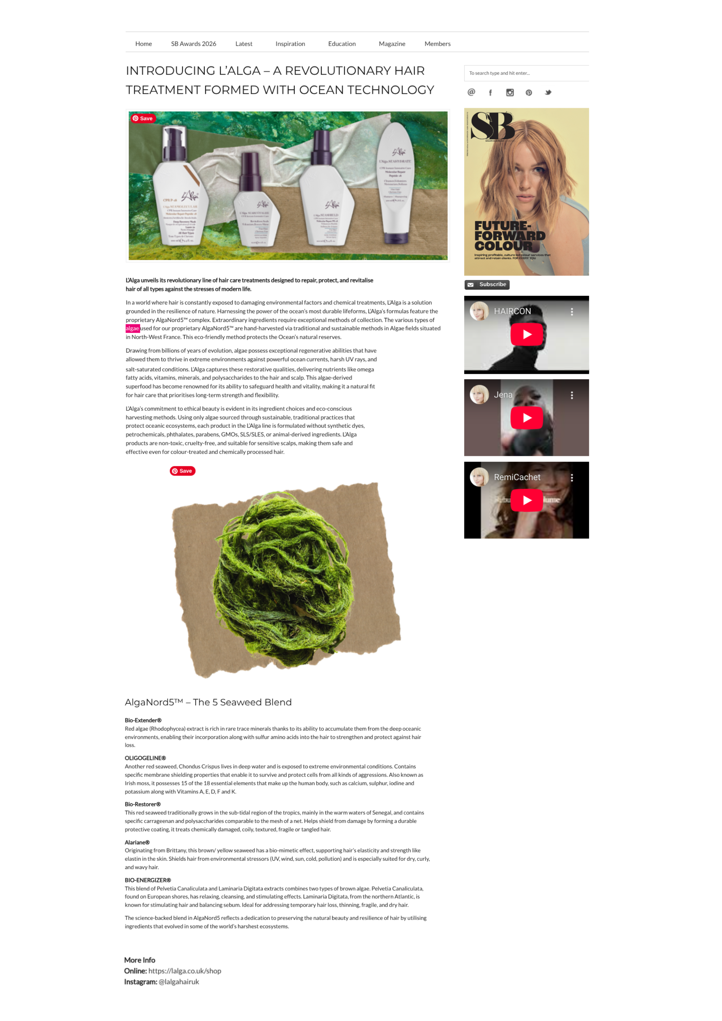 Or promoting the launch of revolutionary green hair products like L’Alga’s algae imbued line, created using sustainable, seaweed hand-harvesting methods.