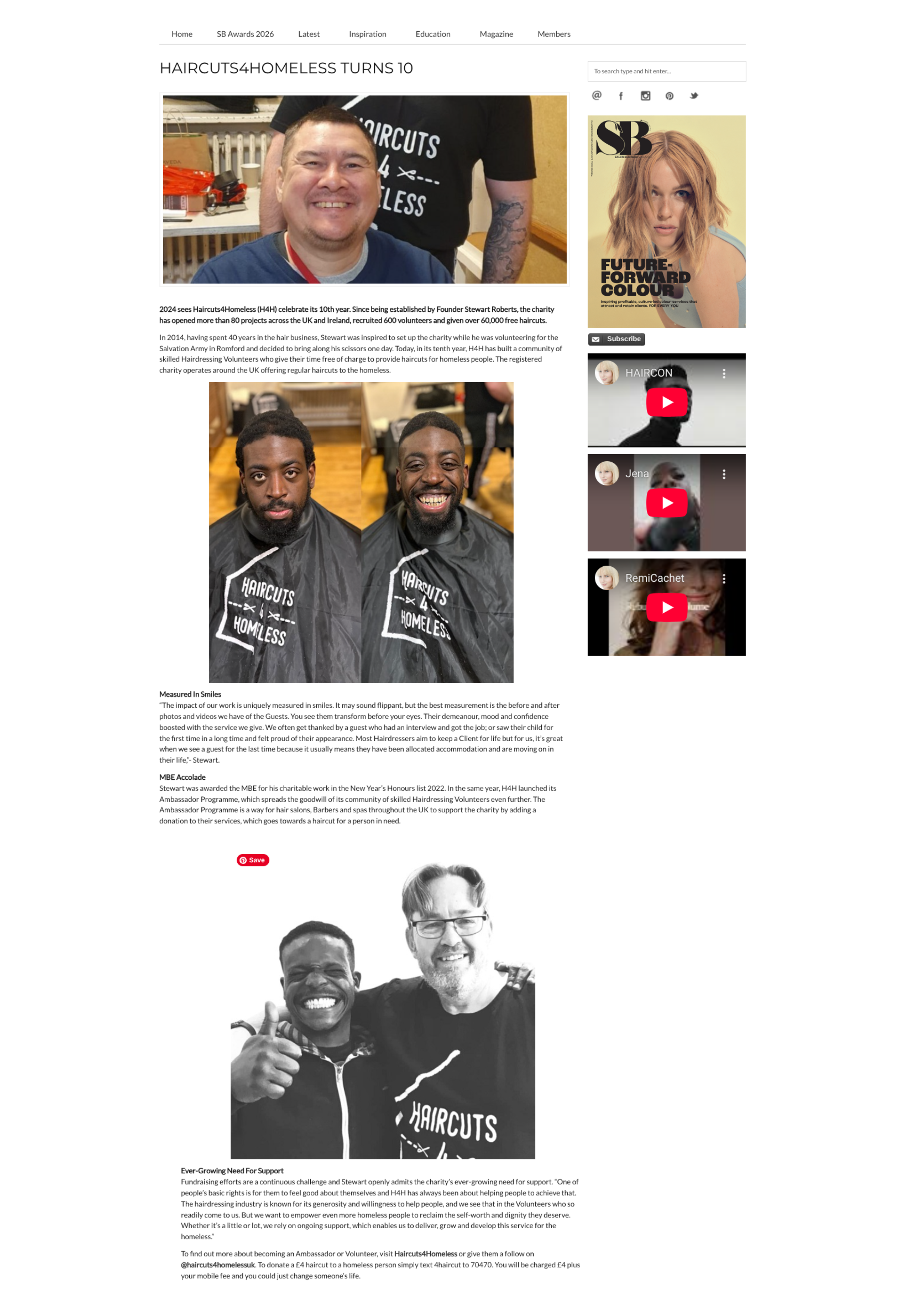 Content is often designed to support the hairdressing community. For example features on the Hair and Beauty Charity offering practical and financial support for Hair & Beauty Pros experiencing hardship.
