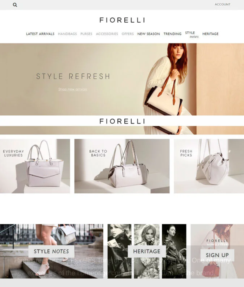 Example of Fiorelli homepage copy.