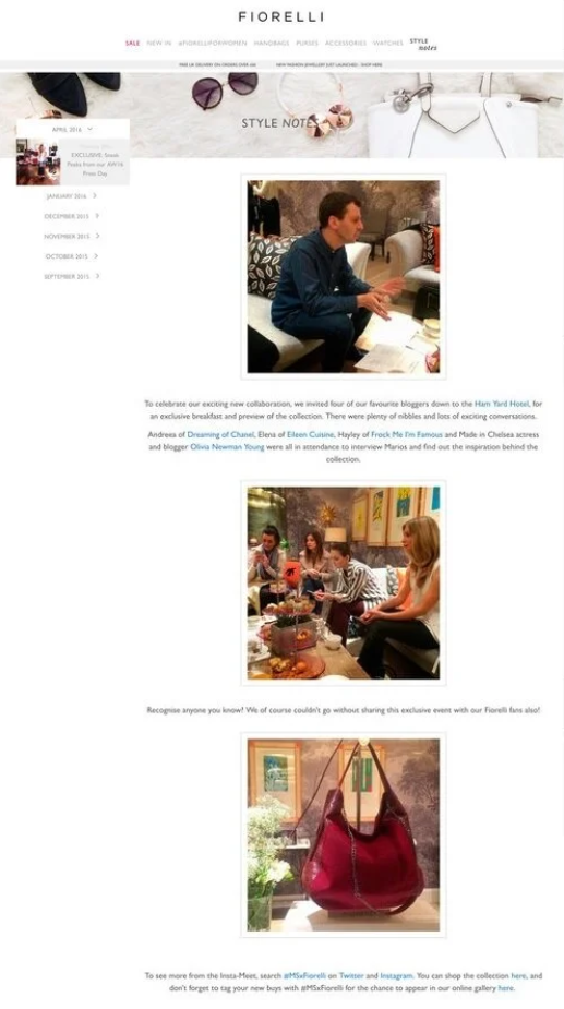 Affordable yet aspirational, Fiorelli is a fashion accessories brand for the trend led consumer. I Coordinated the digital strategy for Fiorelli fashion accessories, with training from external social media and SEO agencies.
