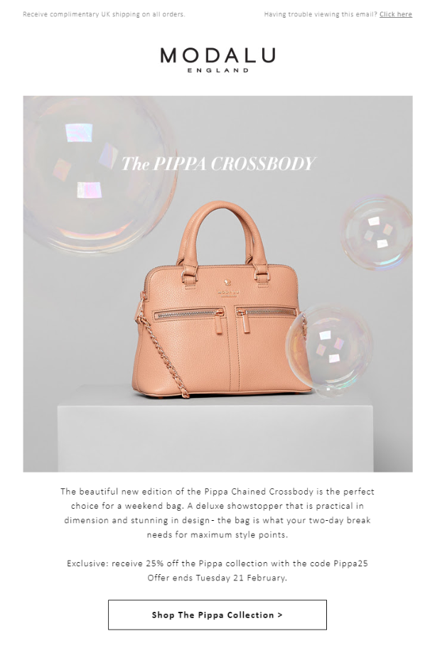 Example of copy for a Modalu email campaign.