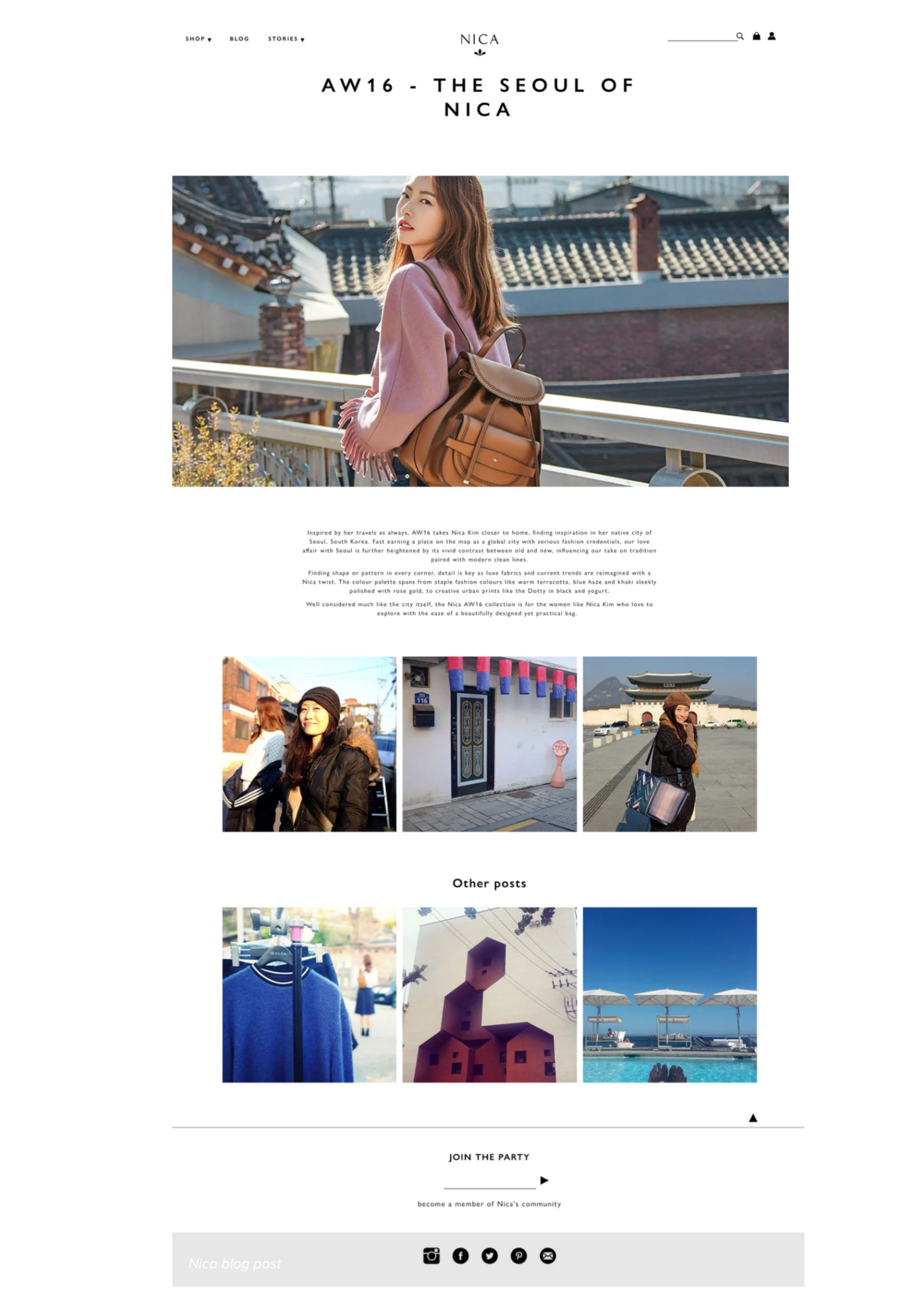 Guiding the brand’s entire copywriting presence both on and offline, a big part of the role was ghost writing blog posts for Nica Kim to share her design inspirations and travels.